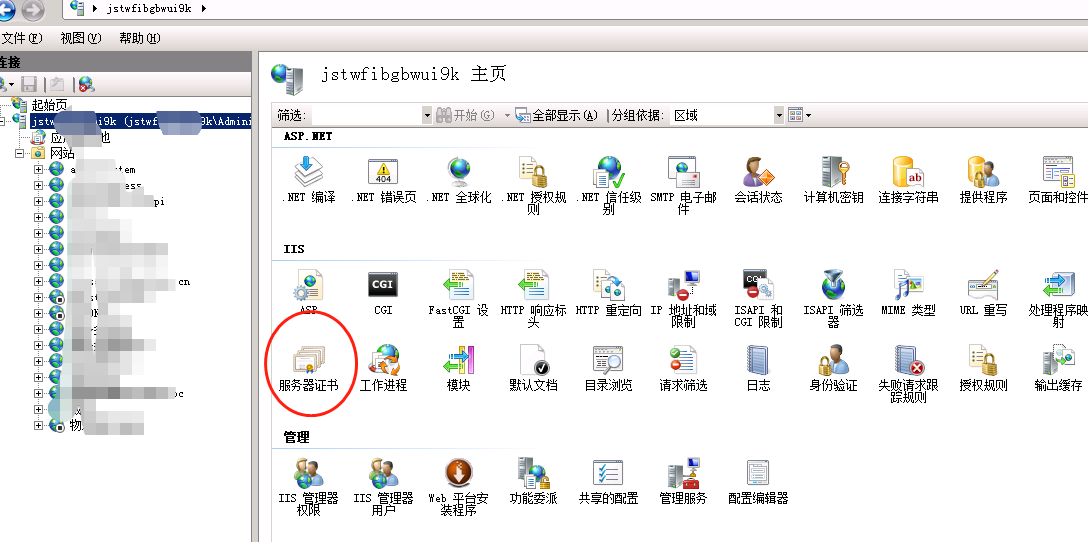 5 iis 选择最顶部,然后宣传服务器证书, 导入;